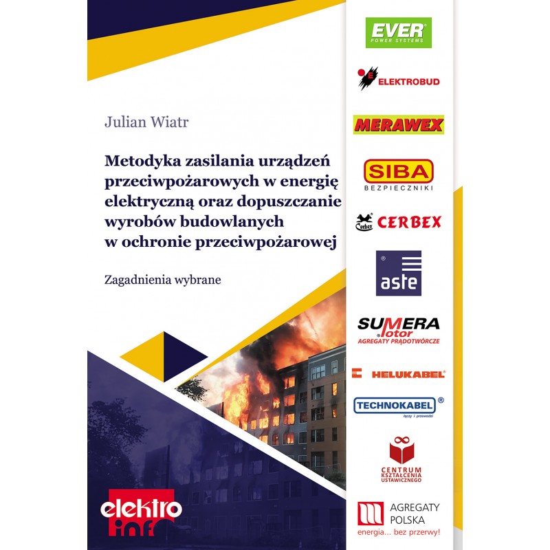 Zasilanie urządzeń elektrycznych w czasie pożaru to zagadnienie, które w równej mierze dotyczy zarówno strażaków, jak i elektryków. Często w praktyce pojawiają się problemy z interpretacją niektórych przepisów zawartych w normach i rozporządzeniach. Recenzowana książka, autorstwa mgr. inż. Juliana Wiatra pt. „Metodyka zasilania urządzeń przeciwpożarowych w energię elektryczną oraz dopuszczanie wyrobów budowlanych w ochronie przeciwpożarowej”, opisuje wybrane zagadnienia, które zdaniem autora wymagają szerszego wyjaśnienia i mają być przydatne strażakom i elektrykom w ich praktyce projektowej. Julian Wiatr jest uznanym autorytetem zarówno w projektowaniu instalacji elektrycznych, jak i ochrony przeciwpożarowej – jest autorem wielu publikacji dotyczących zasilania urządzeń pożarowych, których funkcjonowanie jest niezbędne w czasie pożaru, oraz współautorem Normy SEP-E 005 Dobór przewodów elektrycznych